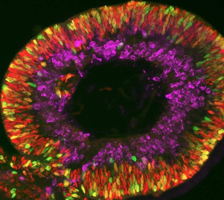 Это изображение сетчатки (светочувствительной оболочки глаза, выстилающей глазное дно) в разрезе. Палочки и колбочки реагируют на свет и по нервным волокнам посылают импульсы в головной мозг.